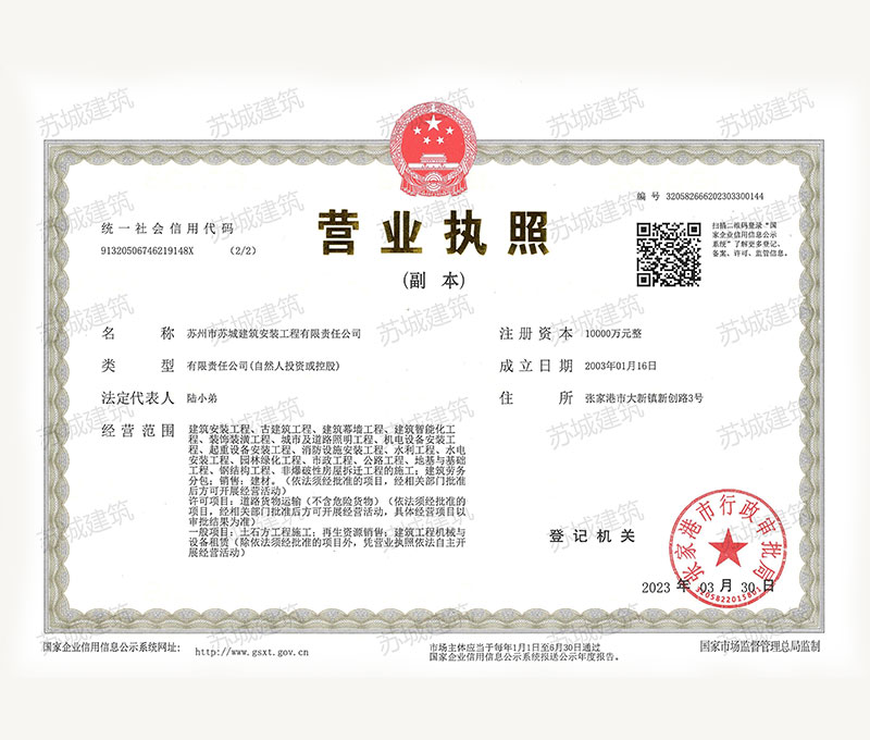 蘇州市蘇城建筑安裝工程有限責任公司是一家建筑業企業,擁有房屋建筑施工總承包一級資質,